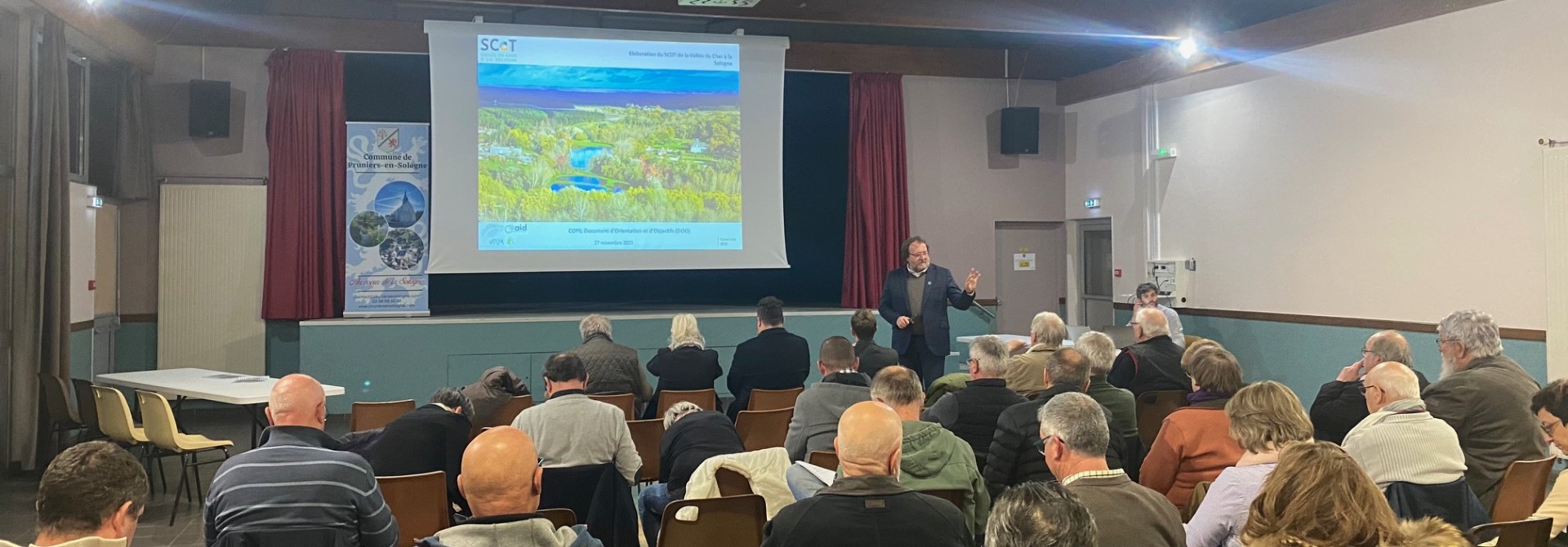Le 27 novembre 2025, un comité de pilotage réunissant les élus du territoire du SCoT s’est tenu à Pruniers-en-Sologne dans le cadre de l’élaboration du Document d’Orientation et d’Objectifs (DOO) du SCoT. Ce comité faisait suite au séminaire de travail d’octobre, qui avait permis d’identifier les premières lignes directrices partagées entre les élus pour ce document.